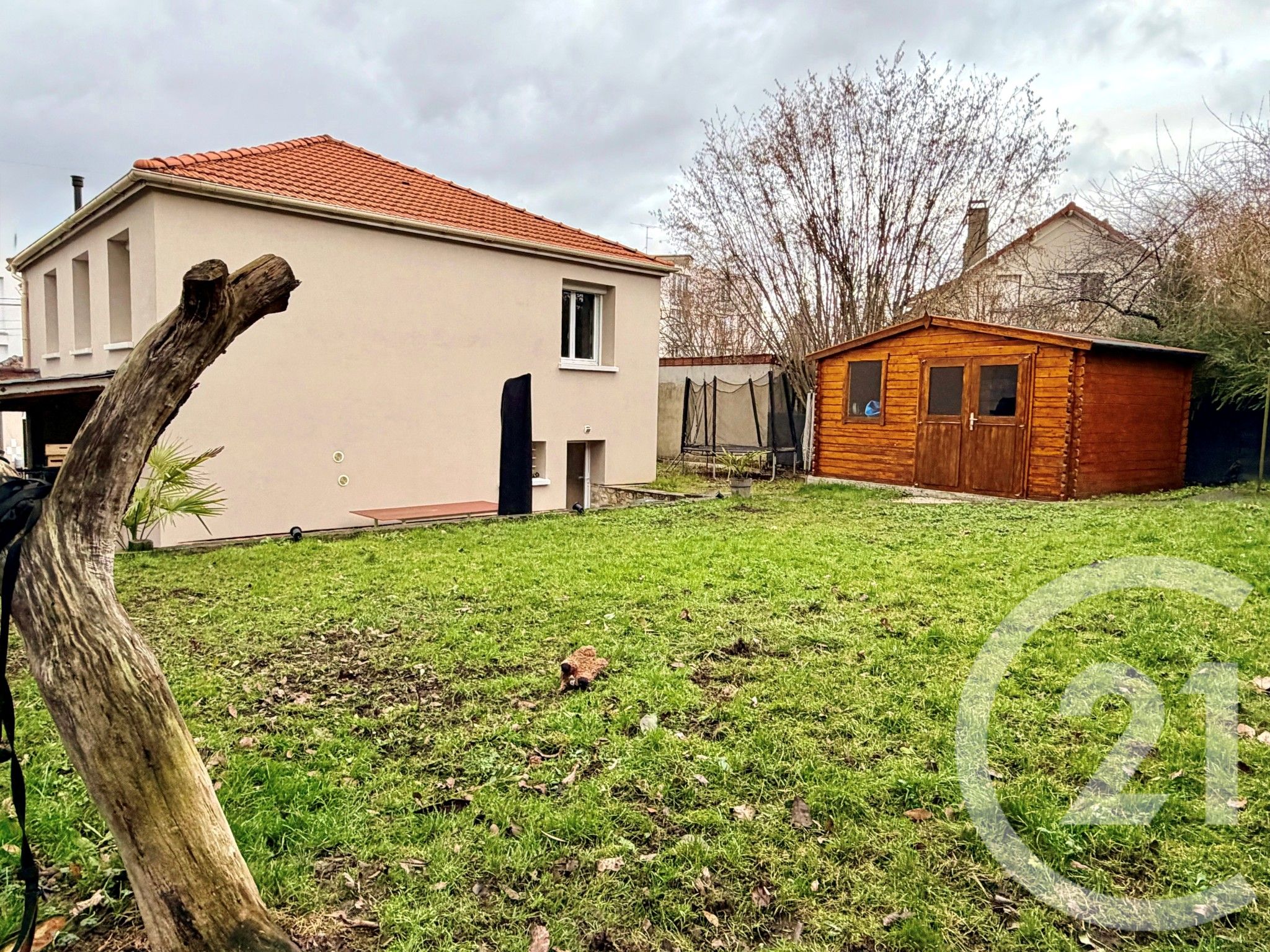 Son terrain total d'environ 544 m² vous permettra de garer plusieurs voitures sur le devant avec un auvent permettant de stationner 2 voitures à l'abri. L'arrière du terrain vous offre une grande terrasse de 25 m² exposée sud avec un jardin clos et un abri de jardin.